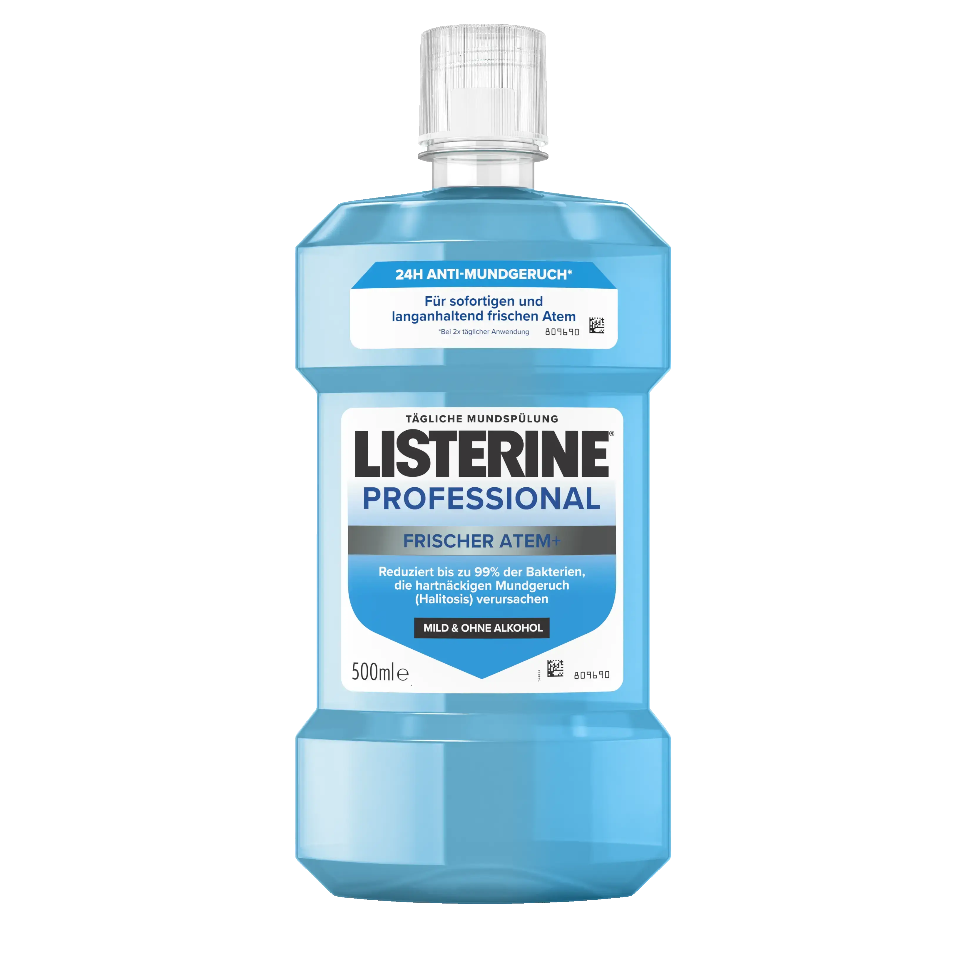 LISTERINE® Professional Frisse Adem+ zorgt voor onmiddellijke en langdurige frisse adem. Bij tweemaal daags gebruik bestrijdt LISTERINE® Professional Frisse Adem+ de oorzaak van hardnekkige slechte adem (halitose) met etherische oliën, zink en de geurneutraliserende technologie. Voor 24UUR ANTI-SLECHTE ADEM* en beschermt tegen bacteriën die slechte adem veroorzaken.